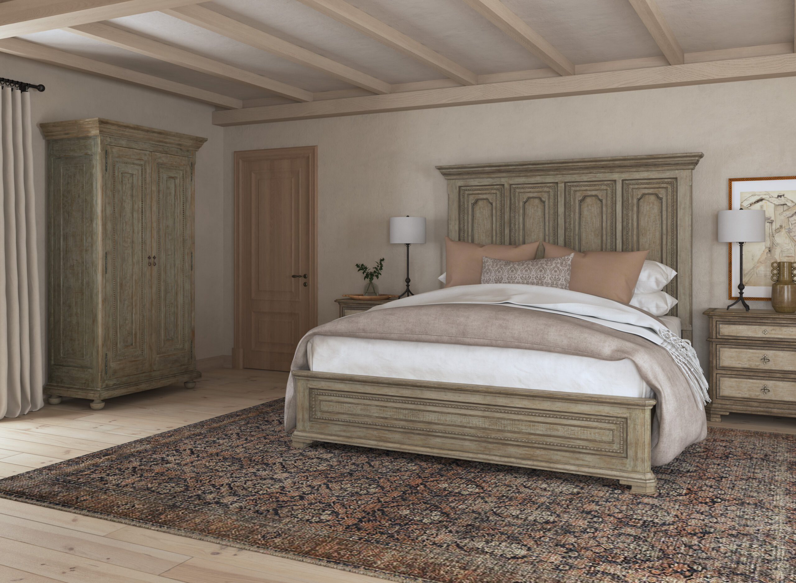 Delivering the casual look and feel of ageless pieces acquired during travels in the Old World, Hooker Furniture is featuring Alfresco, a whole-home collection with relaxed European provincial styling. The Alfresco collection has a well-traveled aesthetic that is inspired by heirloom pieces found in homes perched on cliffs along the Italian coastline of the Adriatic Sea. The collection of bedroom, dining room, occasional and accent furniture features moderately distressed designs that are enhanced by accent paint finishes that create an eclectic feel. Alfresco is constructed of oak, maple and hickory veneers and poplar solids, and includes several pieces with stone and metal accents.