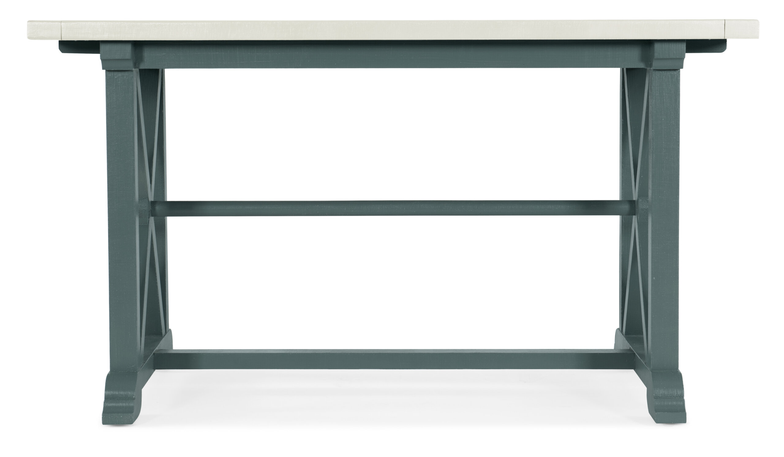 Capture the calming palettes and organic textures of cottage waterfront living with the chic classic counter height Piers Friendship Table. Crafted of Oak Veneers with a Solid-Wood Edge top, the table has an x-motif base and stretcher. If the two 12-inch leaves are used, the table extends to 88 inches long and accommodates 6 counter stools. Without the leaves, it accommodates 4 counter stools.