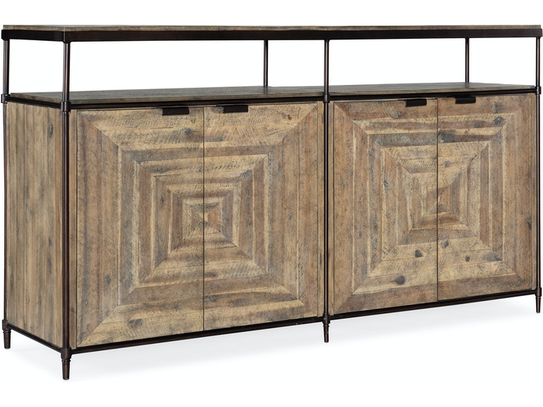 Authentic with an artistic character, the St. Armand Entertainment Console is crafted of Acacia Solid Wood in a light natural finish with antique bronze-colored metal trim. Featuring 4 doors with soft-close hinges and one adjustable shelf behind each pair of doors, the console has a ventilated back panel, FC705 3-plug electrical outlet and accommodates up to a 60-inch TV. Our TV consoles accommodate media components without disrupting functionality in an elegant mix of materials.