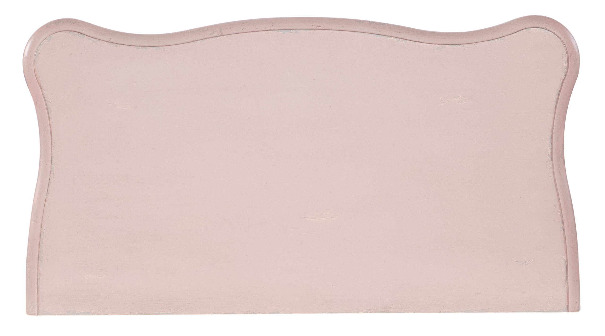 Light distressed pink finish with satin nickel decorative ring pulls and faux lock accent