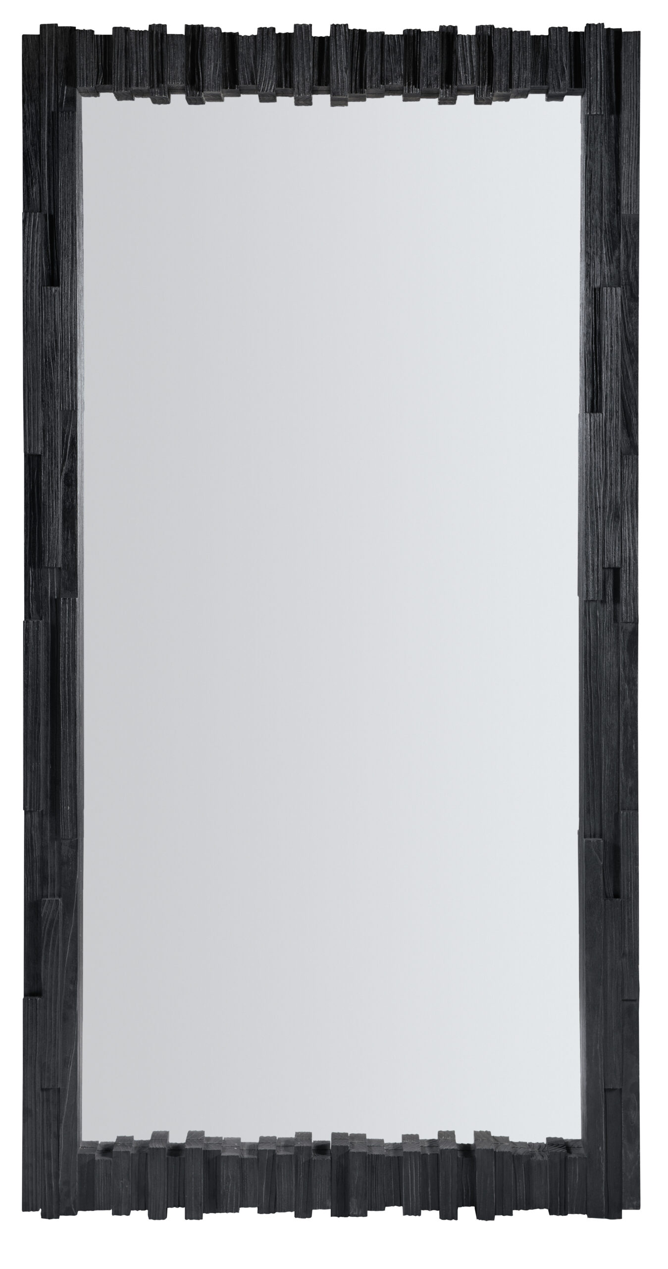 New Zealand Pine Veneers in a Charred Black finish featuring a Japanese technique to achieve the look of burnt wood create a truly unique piece in the Chapman Floor Mirror. Offered in a rectangle shape, the mirror attaches to the wall for stability.