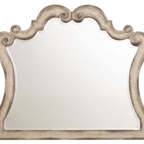 The perfect complement to the stately and stylish Woodlands Dresser, the shaped-top Woodlands beveled-glass mirror is all class. The mirror is finished in the versatile Heathered Lambswool, a serene mid-tone that walks the line between gray and taupe.