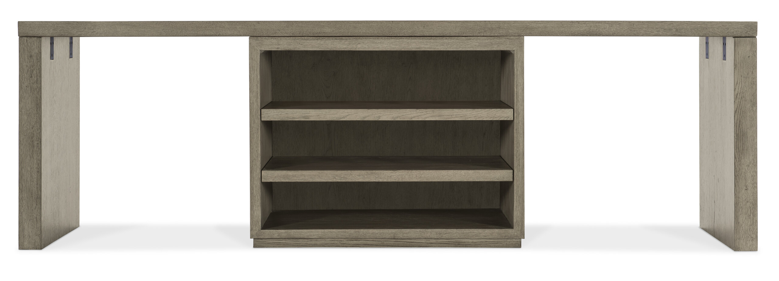 Capturing the essence of nature’s organic color palette on a clean-lined, simple silhouette, the Linville Falls Desk is crafted of Oak Veneers with a soft smoked gray Mink finish. The expansive 96-inch wide top has a functional base with an open desk cabinet in the center and two leg end panels. The roomy cabinet provides ample storage with two adjustable shelves. The entire desk is fully finished on the back so it can be floated in a room.