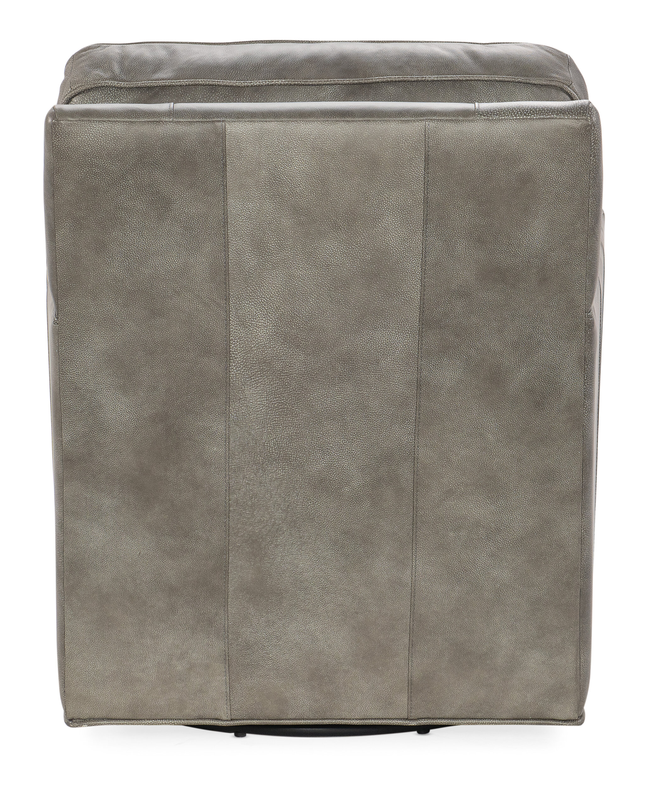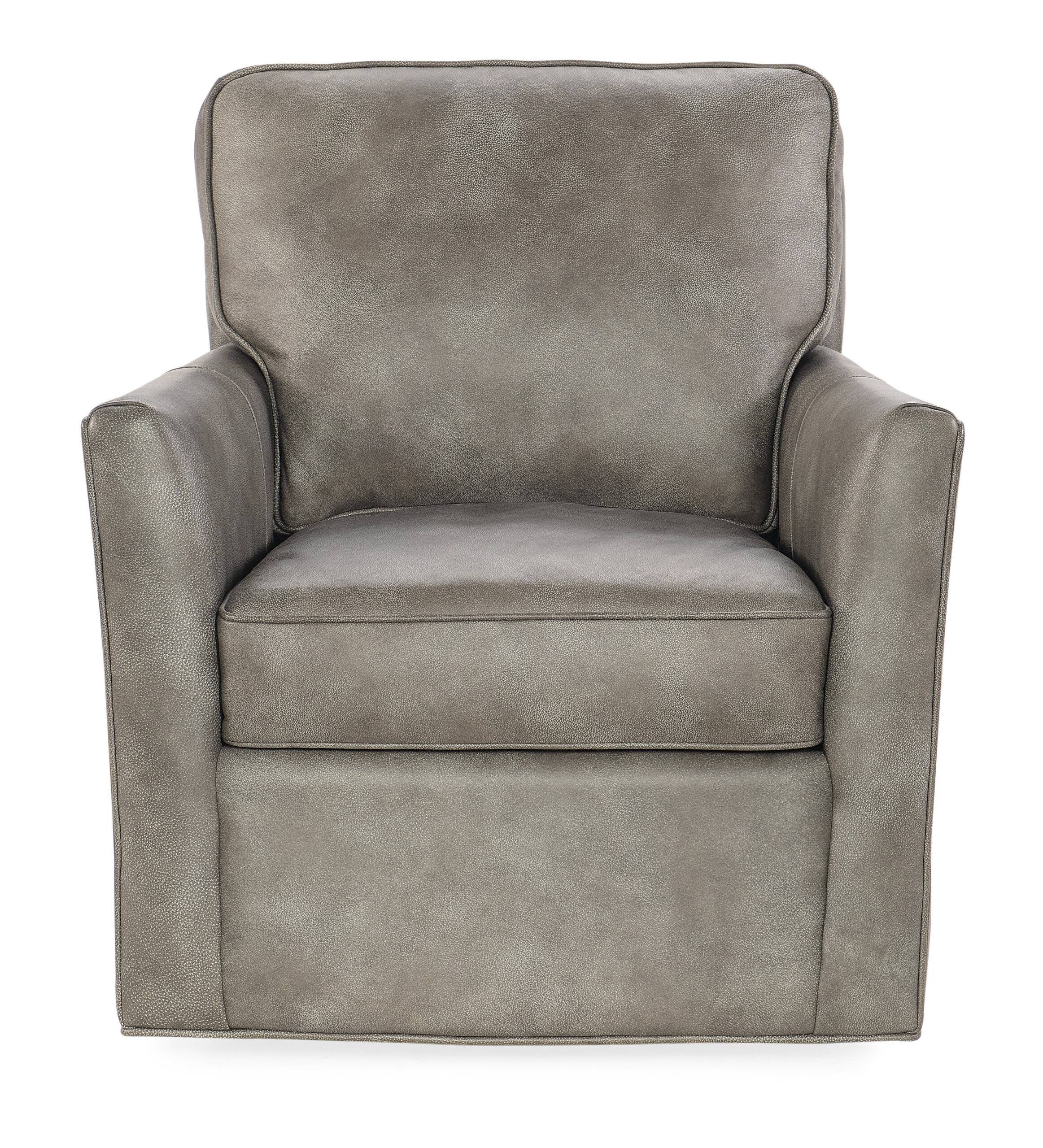 Exquisite tailoring meets sink-in-me comfort in this CC Swivel Chair, with a plush loose box seat cushion and ample back cushion outlined in welting. Generous scale and flared arms add inviting style, along with the Captain finished top-grain leather cover in an organic gray color.