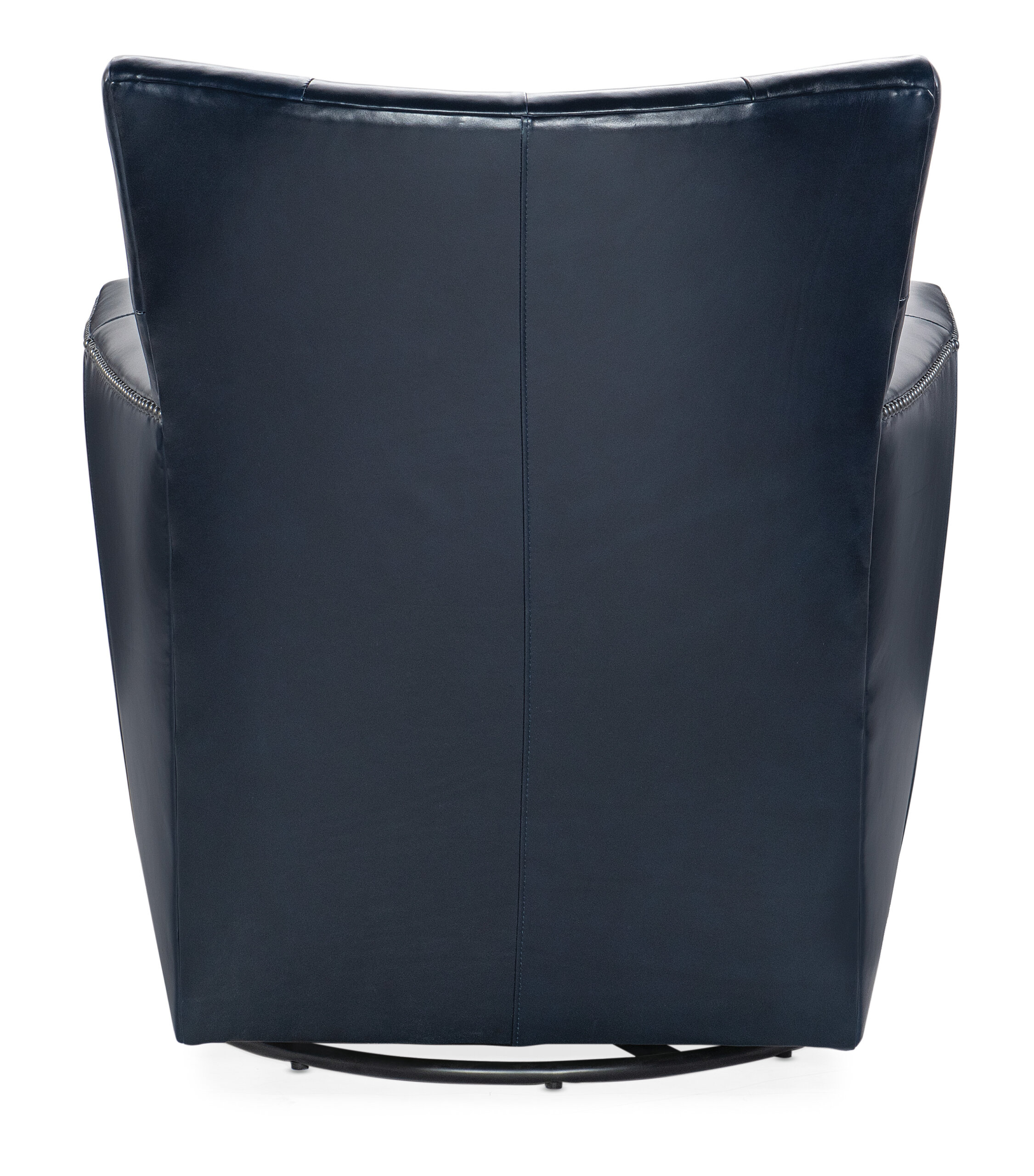 With a stylish retro vibe, this CC swivel club chair has a button-tufted back, pewter nailhead trim, and is upholstered in the upscale deep blue Empire State Hamptons aniline top-grain leather. Flared arms add a designer touch.
