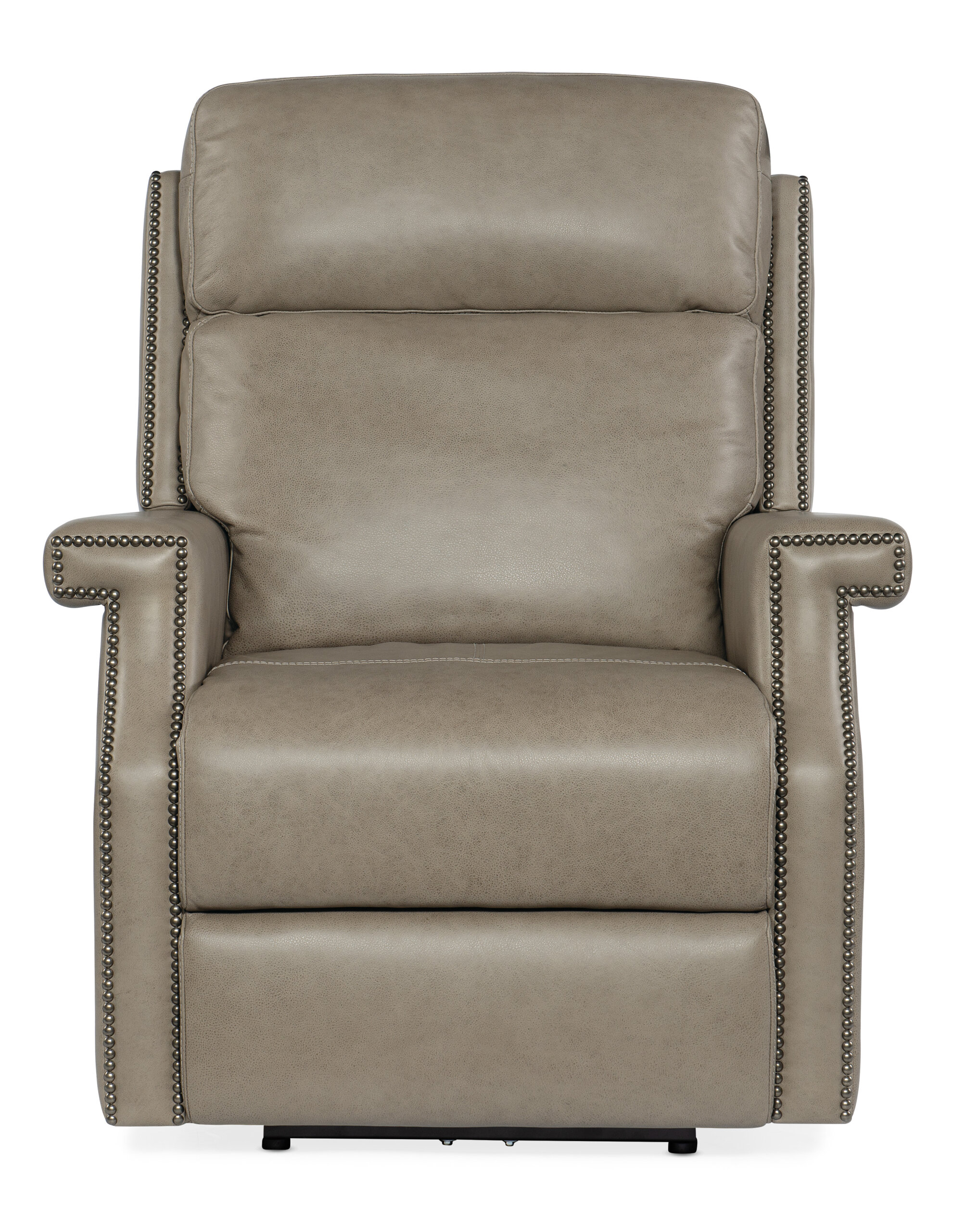 In a chic transitional, well-tailored design, the Vaughn Zero Gravity Recliner with Power Headrest is offered in the finished top grain leather called Shattered Stone. Reclining at the touch of a button with a zero-gravity feature that gives you the feeling of being suspended in air for maximum comfort, the recliner has a bustle-style back and vintage gold nailhead trim. Includes USB port to charge your device while you relax.