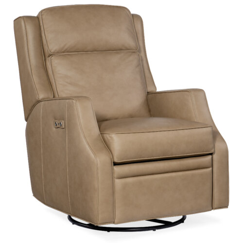 In a light and airy leather-and-finish combination, the Dunes Power Recliner with Power Headrest is as relaxing as an ocean breeze. The stylish silhouette features tapered wood feet in a white finish, a bustle style back and flared arms, covered in the quality semi-aniline top grain Aline Light Gray leather. Includes USB port to charge your device while you relax.