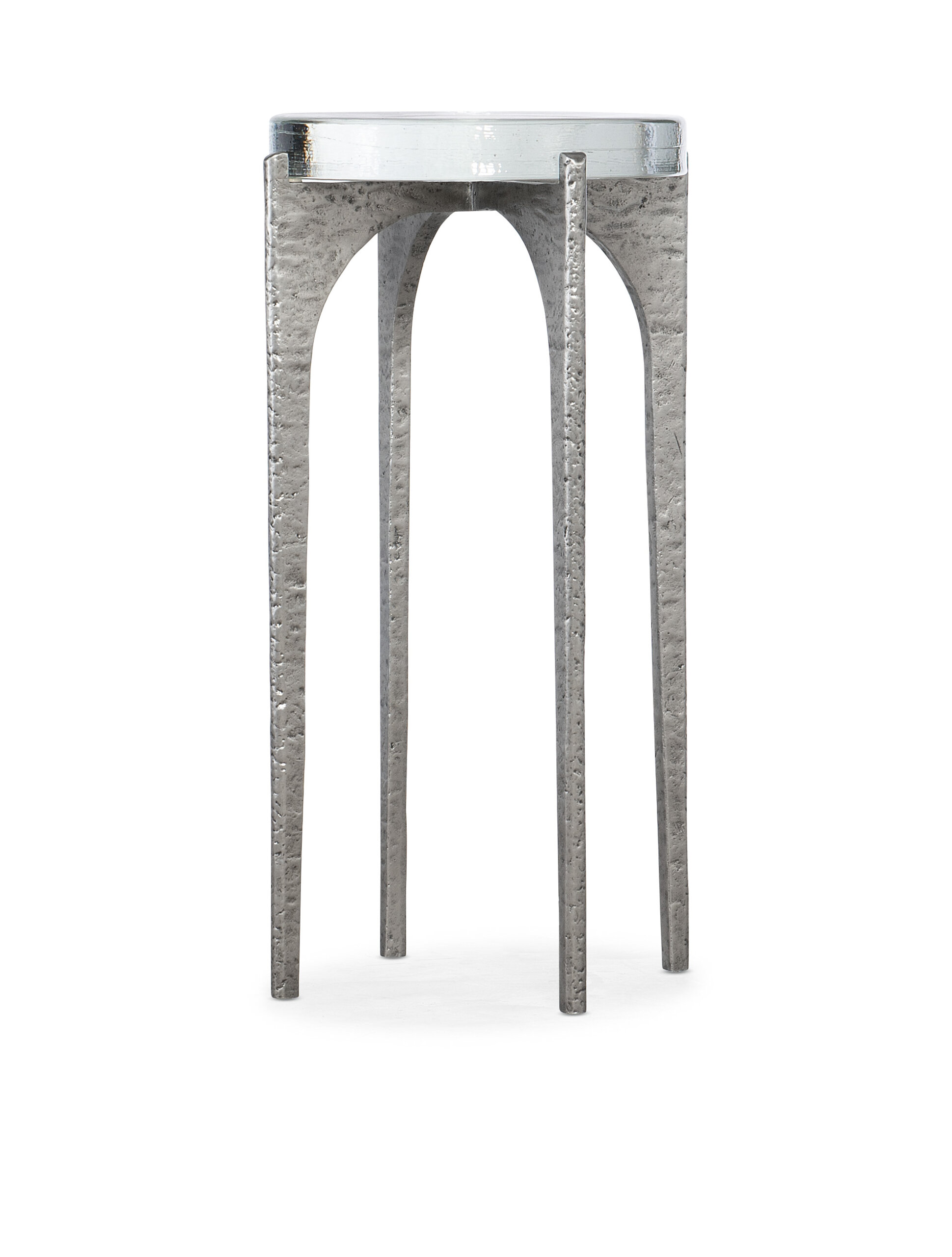 Exuding authenticity and chic sophistication, the Chapman Martini Table combines hand-hammered forged pewter with a thick glass top in a convenient, compact 15-inch W x 15 D footprint.