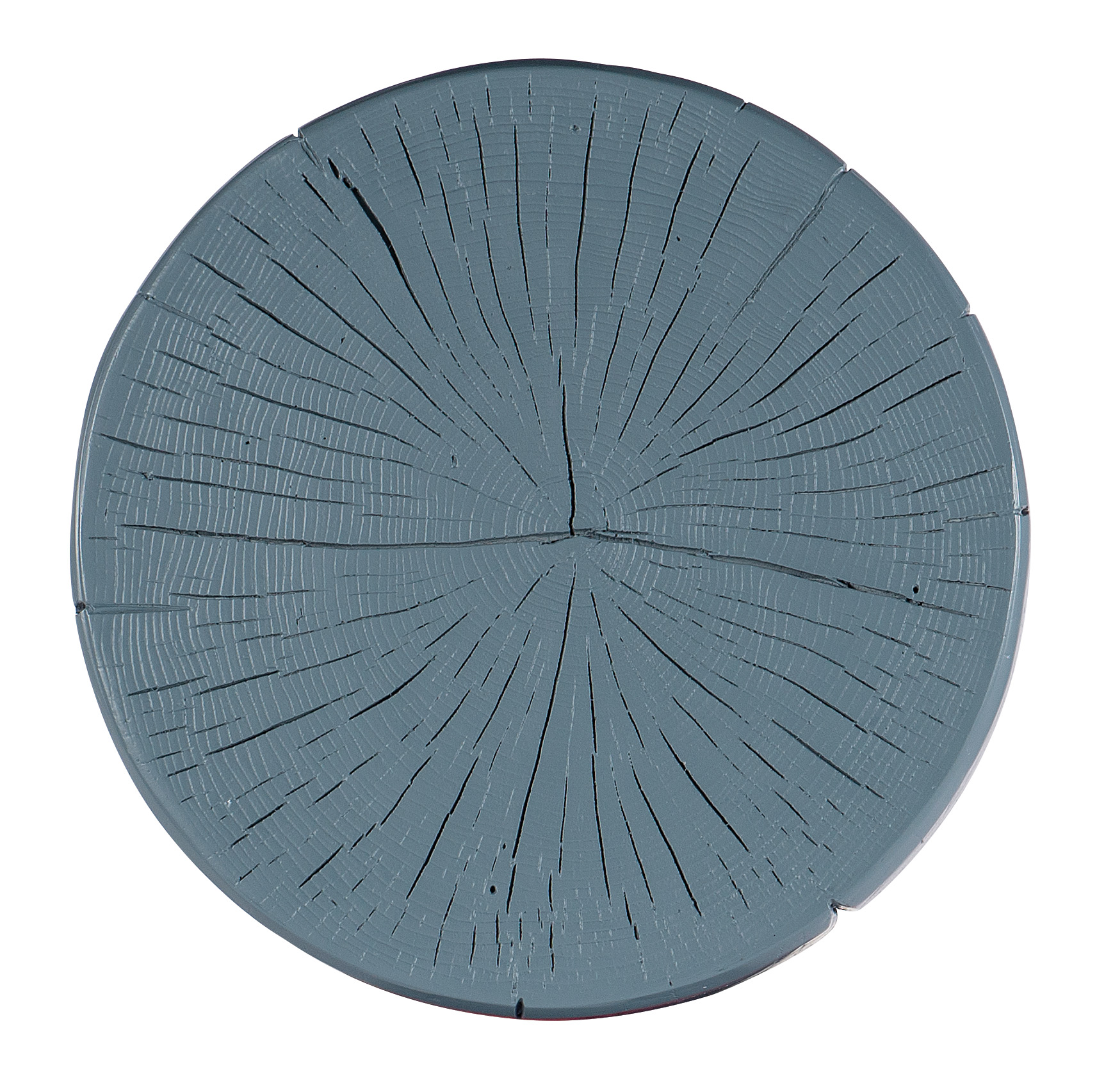 Crafted with cast resin in a design to portray nature’s aged roots, the Carved Stump Side Table is hand-painted with a bold geometric tribal print in white on a soft blue background.