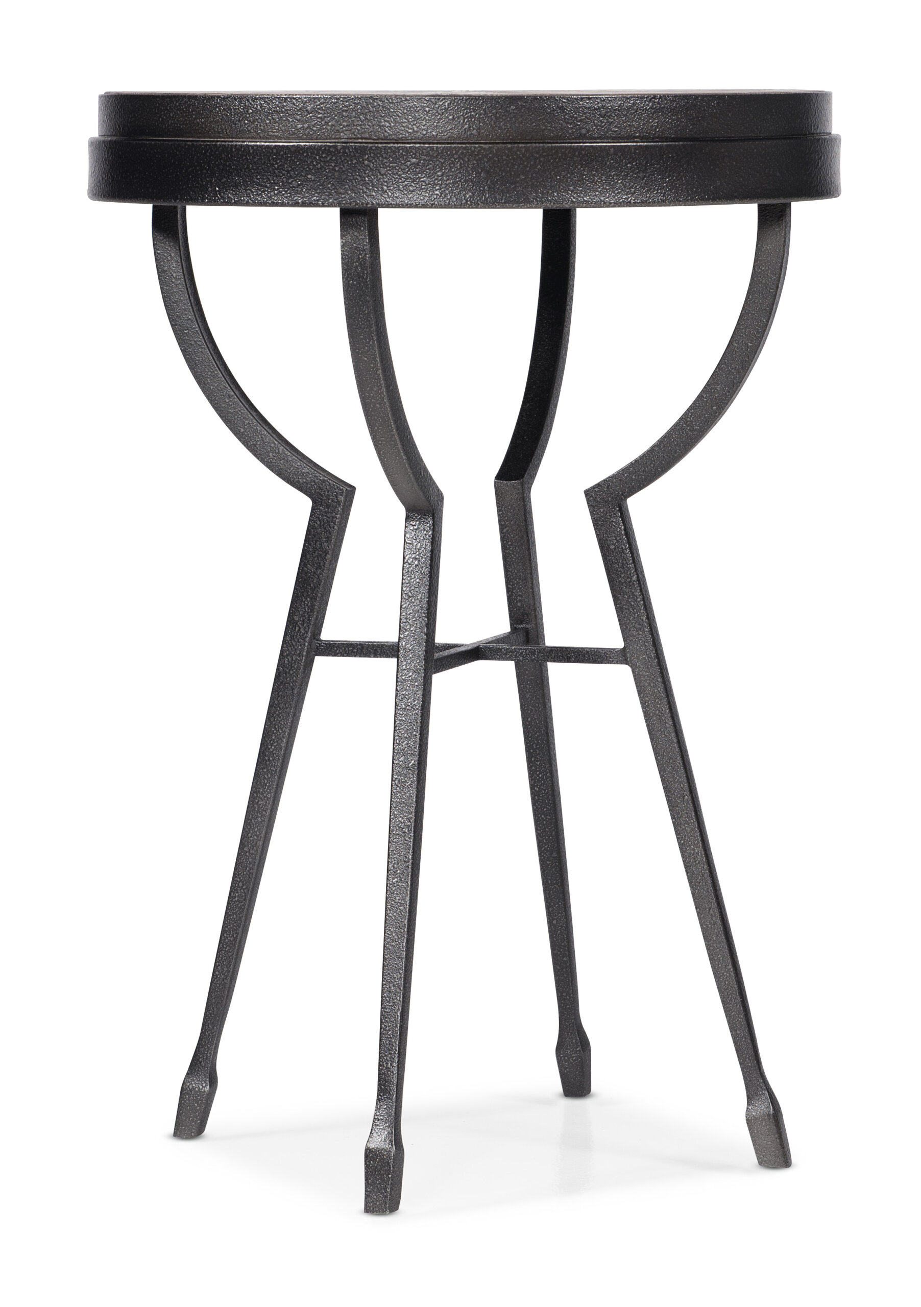 Rustic, tactile and modern with artistic simplicity, the Commerce & Market Metal Side Table is crafted of Hammered Aluminum and Carbon Steel and features a wood top in a light finish highlighting a dramatic starburst veneer.