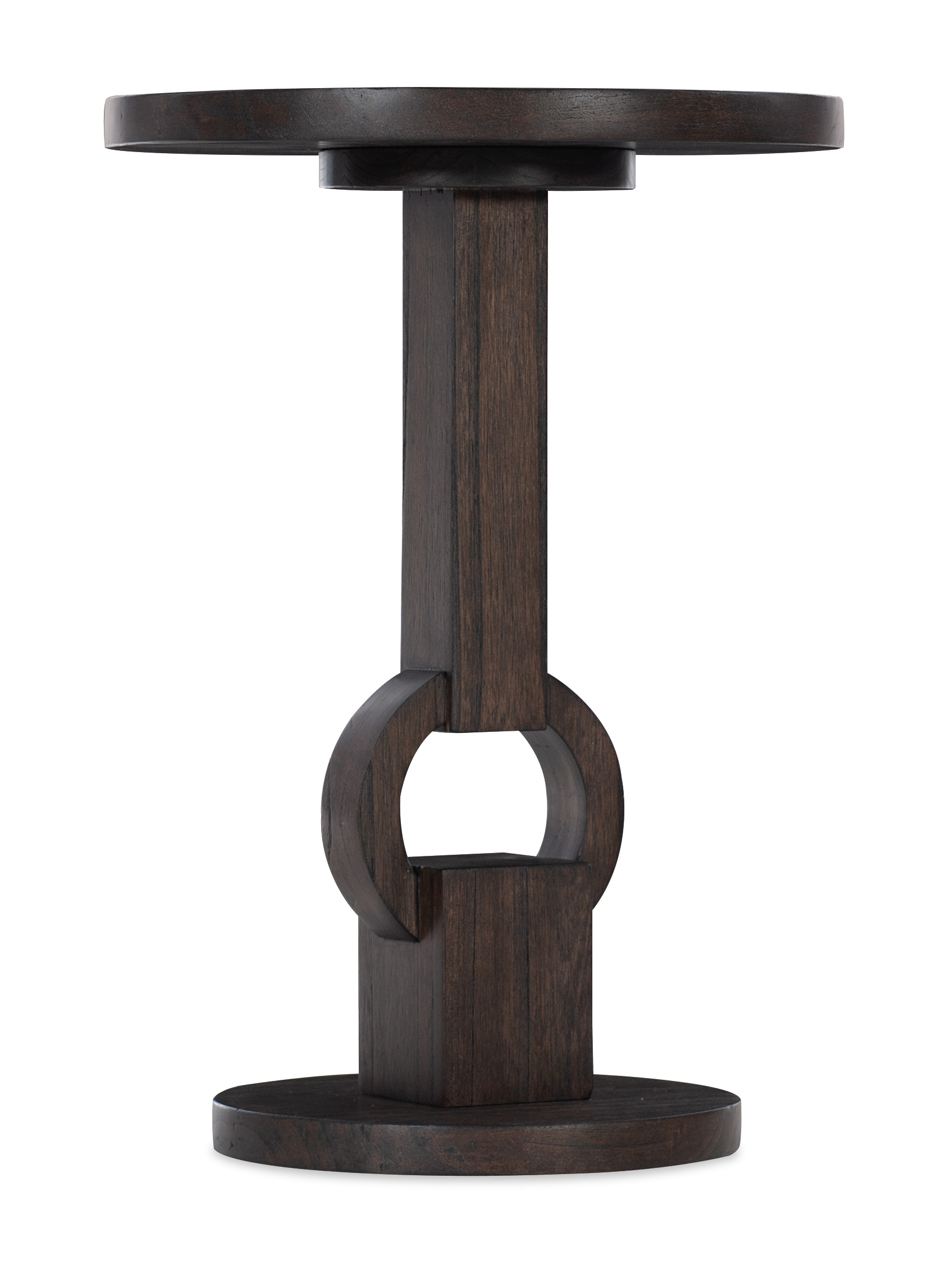 Create a rustic industrial vibe with the Commerce & Market Round Side Table, crafted of Mindi Solids with a dark wood finish and keyhole-motif base. With a round shape and convenient, compact footprint, this piece fits effortlessly in a variety of spaces.