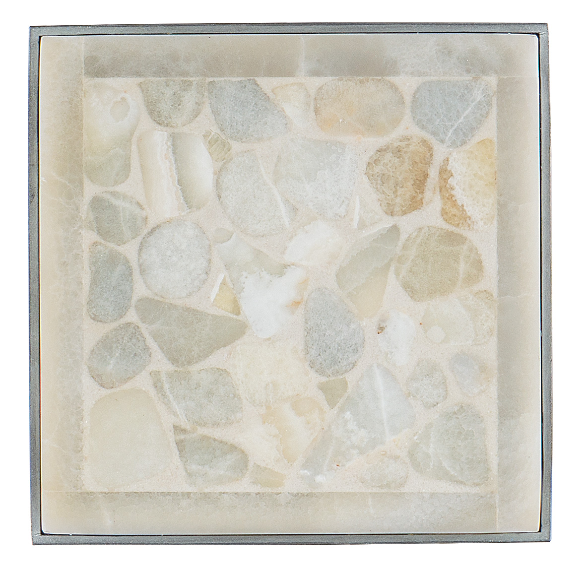 Pewter metal base with tumbled white onyx