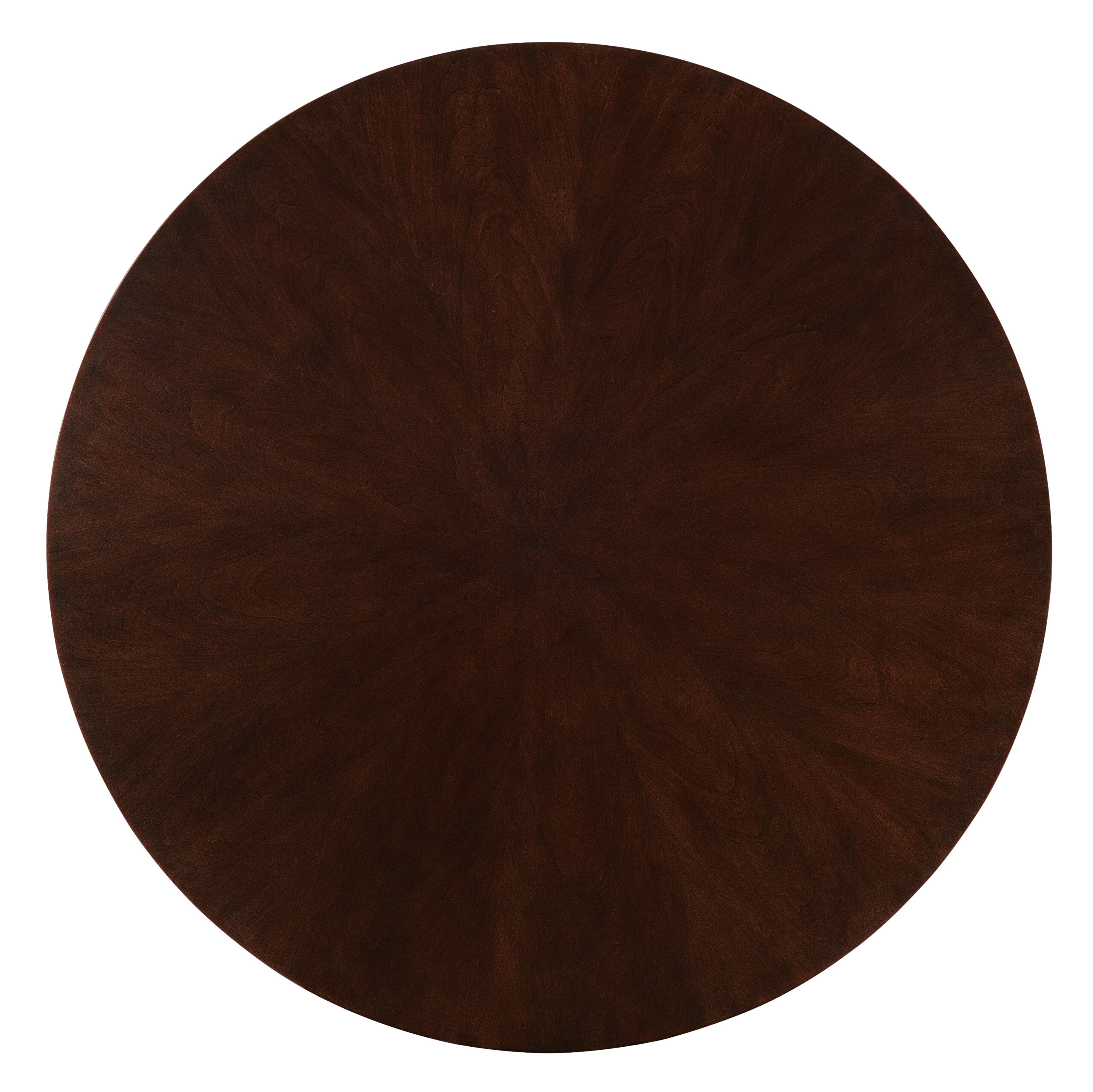 With a simple but elegant design, the round Bella Donna Cocktail Table showcases the deep translucent Caviar finish on rich Cathedral Cherry Veneers. Casters on the table make it effortless to move from place to place.