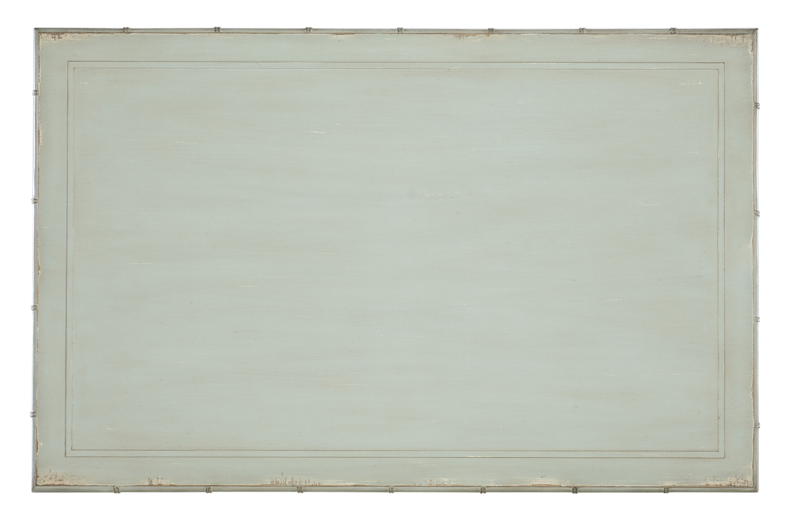 Inspired by the tropical craftsmanship of the West Indies and classic British and Dutch Colonial design periods, the Charleston Rectangle Cocktail Table has Bamboo-designed accents. Crafted of Maple Veneers and Resin, it is finished in Haint Blue, a soft color which can be found on the ceilings of porches and entryways, window shutters and doors in the American South, dating back more than 200 years from the Gullah folklore that held the color kept “haints” or spirits from entering homes and dwellings.