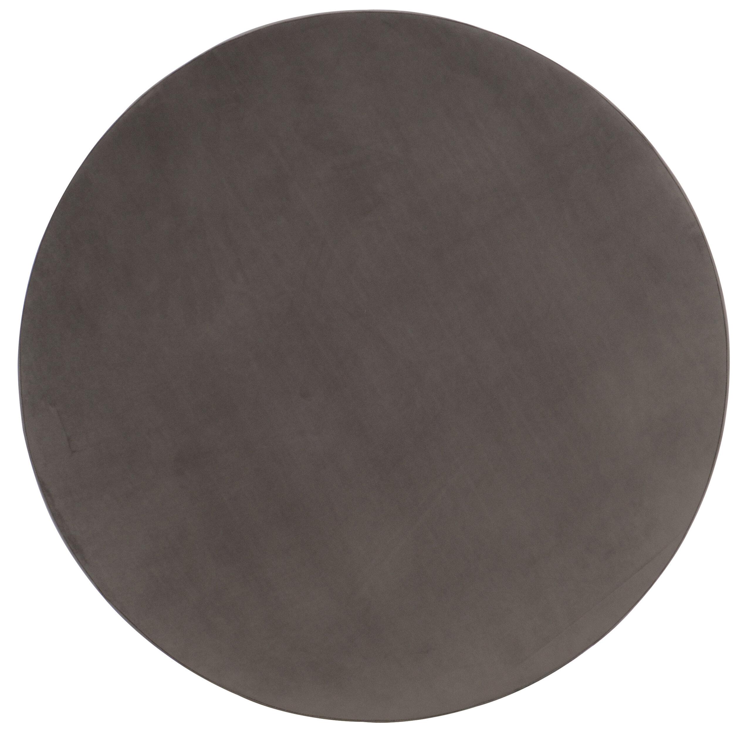 A delicately scalloped edge accented with intricate copper nails joins the soft gray fabric top of the Meyers Cocktail Ottoman with the tactile wood base crafted of Oak Veneers. On casters for easy mobility.