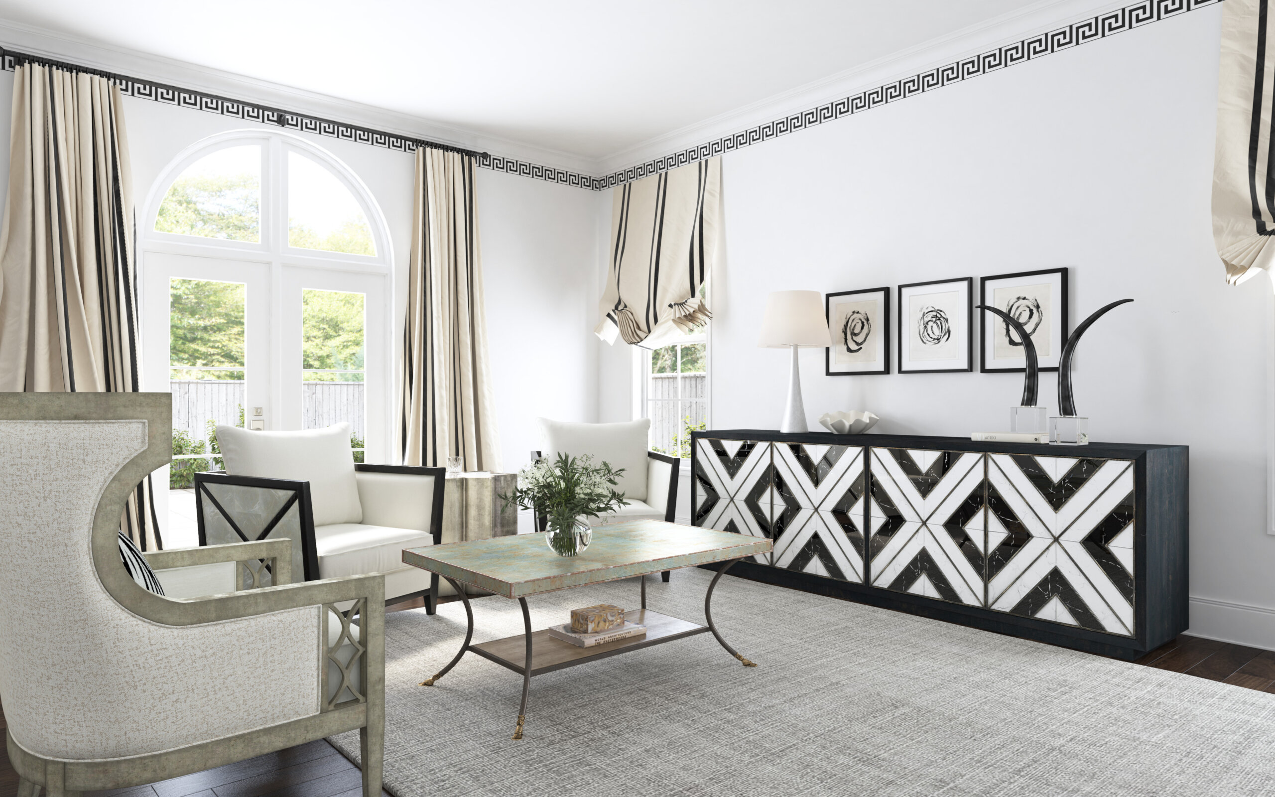 Jewel, a silver finish with rich undertones of gold and champagne with Metal Noir, a dark antiqued metal and Heirloom aged finish eglomise.