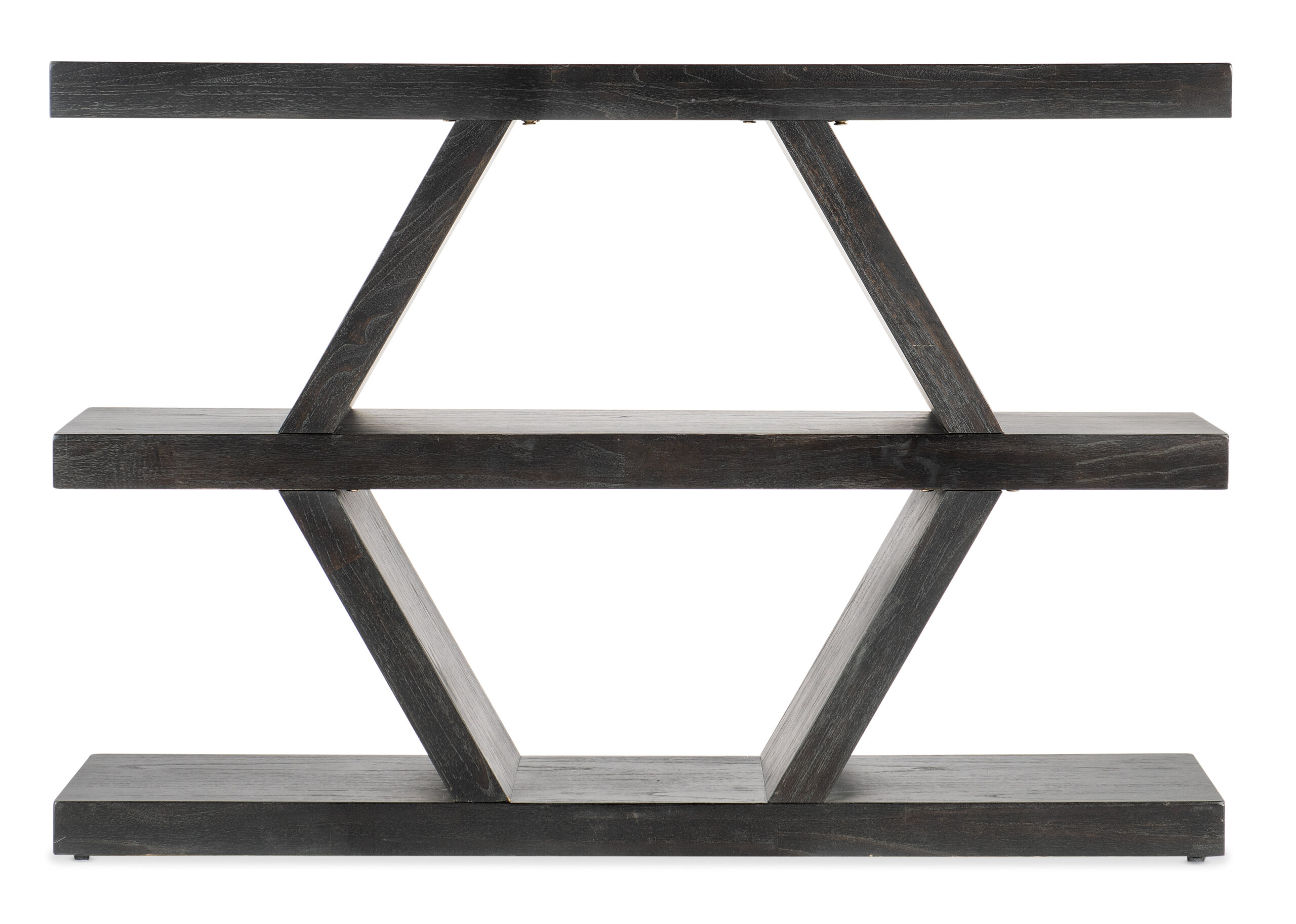 In a dynamic geometric design, the Commerce & Market Geo Lines Console has a narrow footprint, making it versatile to add a punch of style even in tight spaces. Crafted of Acacia Solids with a dark natural finish, it has one fixed wood shelf.