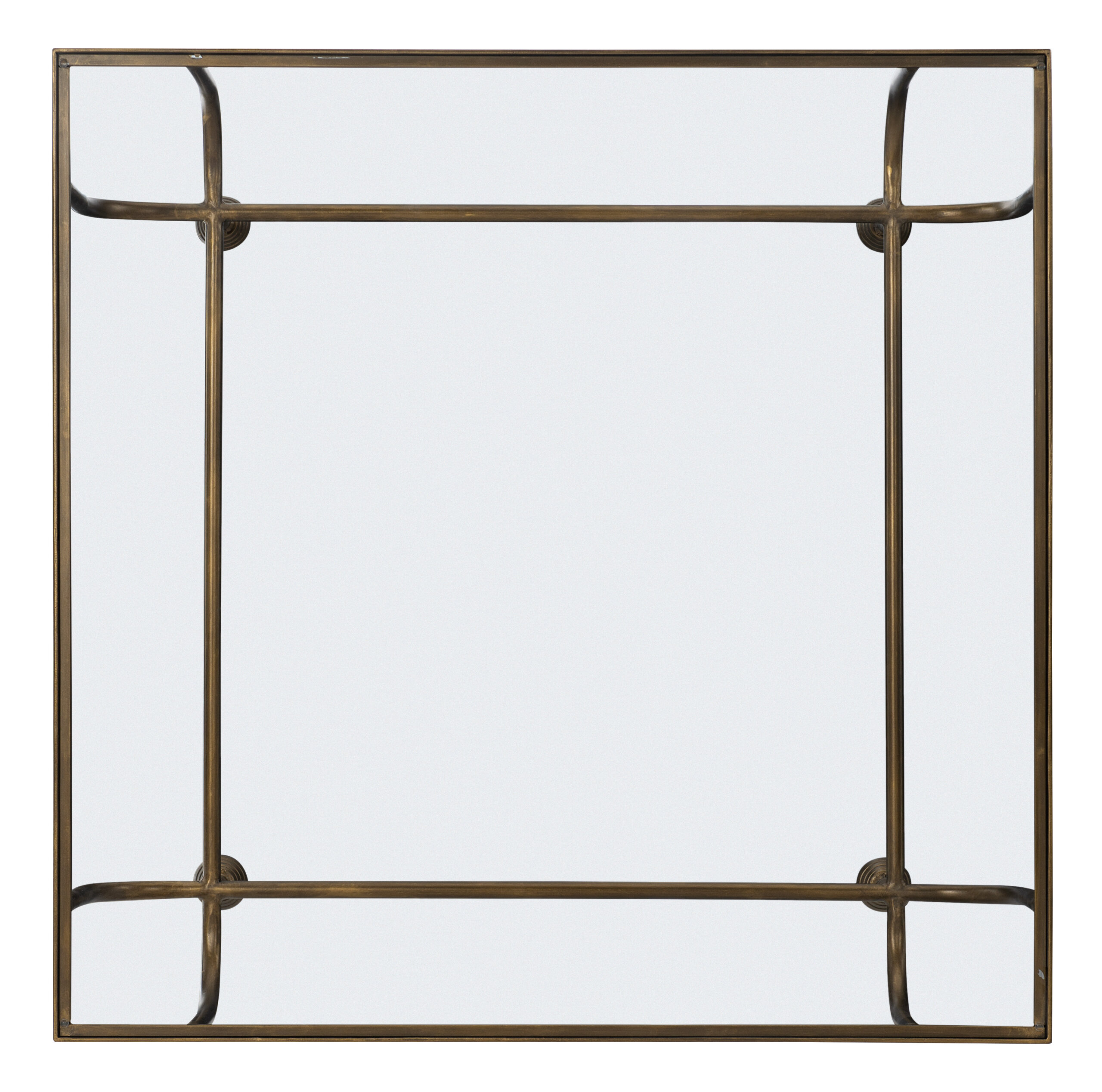 Appearing to float in air, the lightly-scaled metal-framed Kiara Square Cocktail Table elevated on stacked metal feet will inspire your interiors. Crafted of iron with a tempered glass top, the table is finished in bronze metal with gold undertones for a warm metal ambience.